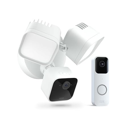Blink Outdoor 4 (4th Gen) cameras + Wired Floodlight Camera + Video Doorbell – HD live view, motion detection, two-way talk, weather resistant, set up in minutes, Works with Alexa